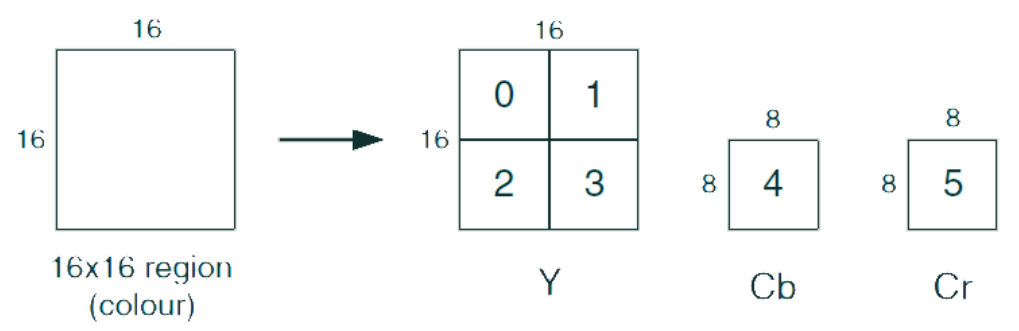 宏块(Macroblock)是帧中 16x16 大小的区域,它是包括 MPEG-1、MPEG-2、MPEG-4 Visual、H.261、H.262、H,264 在内的很多视频编码标准的运动补偿预测的基本单元。